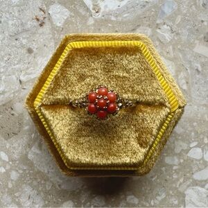 Coral Halo Filigree Yellow Gold Art Nouveau Victorian Ring