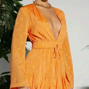 Orange Boho Womens Plunging Neck Knot Front Solid Dress