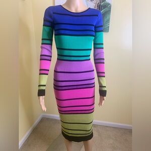 💫HOST PICK‼️💫 NWT LE SUPERBE Chakra Knit Ribbed Midi Dress in Multi-color Stripes, Size Medium.