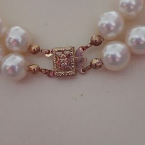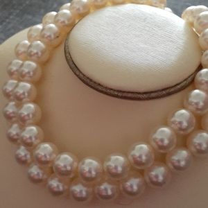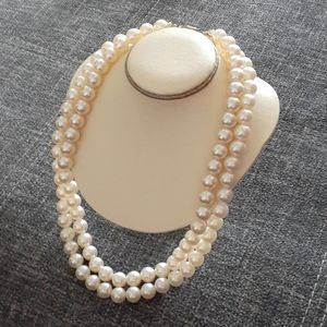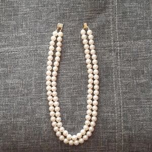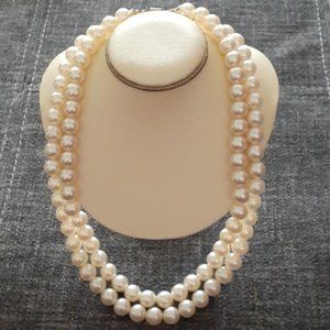 Very gently used condition. 2-strand faux pearl necklace with gold pearl clasp. 18 inches long. Stunning!