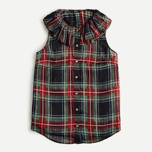 J Crew Sleeveless ruffle-collar plaid black Nwt academia core