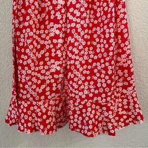 NWOT Relipop Women's Red & White Floral Print, Deep V Neck, Short Sleeve, Wrap Tie Waist, Ruffle Hem Short Casual Summer Dress in Size Large