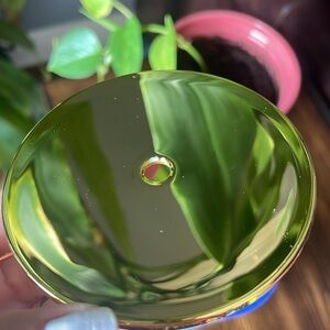 Top has a minor chip on the inside where the straw is, but you barely see it when the straw is in the top. A few minor scuffs on the bottom of the cup (see photos).