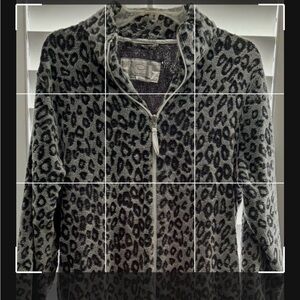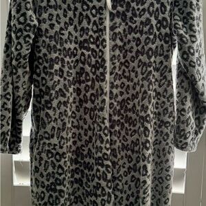 Oscar dela Renta Gray And Black Leopard zippered Robe XL