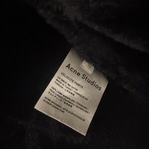 Deep navy, almost black Acne Studios shearling and leather jacket. Zip fastening through asymmetric front.