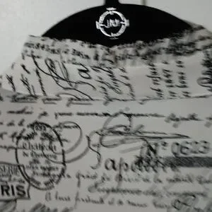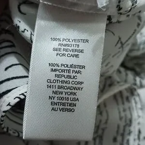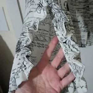 This hangs beautifully and is cool to the touch. Small ruffled band collar and ruffled edge of sleeves.