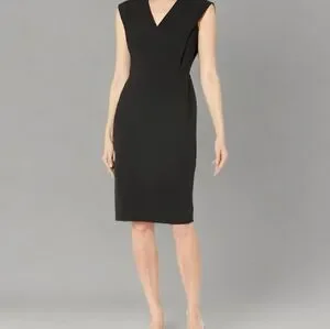 Classic Calvin Klein V-Neck Scuba Crepe Sheath Dress. Flattering fit little black dress!
