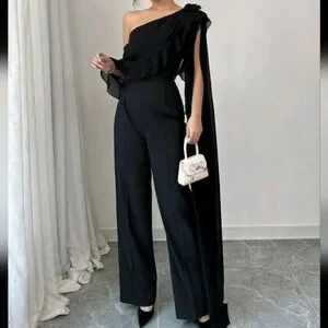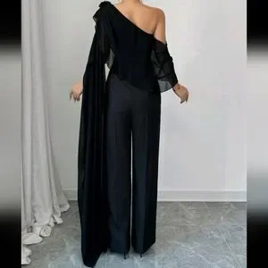 Elegant One-Shoulder Jumpsuit With 3D Floral Decor