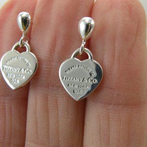 NEW Mini Heart Teardrop Stud Earrings Return to Tiffany & Co Solid 925 Silver