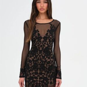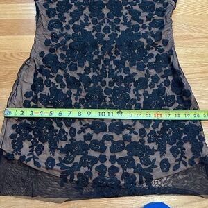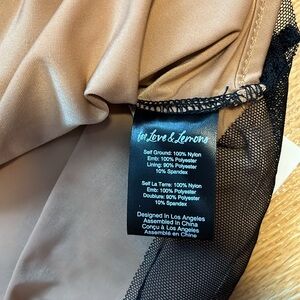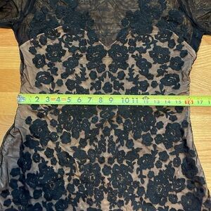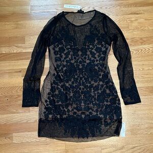 NWT FL&L Luau mini dress in black mesh and black embroidery with tan lining. This is a newer FL&L item, so their newest size charts apply. See measurements in pictures. All offers welcome!