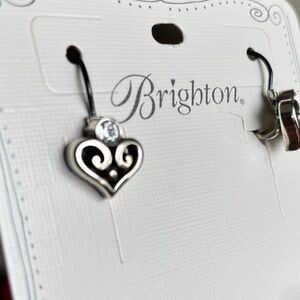 Featuring fine quality crystals atop swirly filigree hearts, these sweet silver-plated earrings are perfectly Brighton in every way.