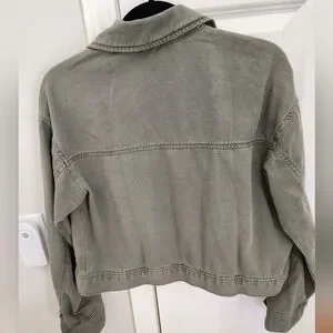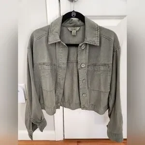 Cute and trendy cropped lightweight olive green jacket from Old Navy.