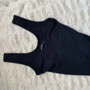 Elevate your style with this sleek black ribbed tank top. Perfect for any occasion, it offers comfort and versatility. A must-have addition to your wardrobe.