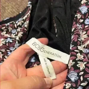 This midi dress by BCBGeneration features a floral print pattern in shades of blue, purple, etc.