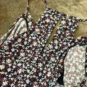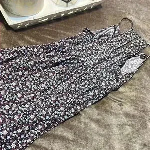 BCBGeneration Blue, Purple & Pink White Floral V-Neck Halter Sundress - Large