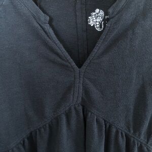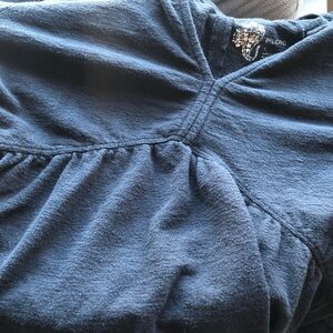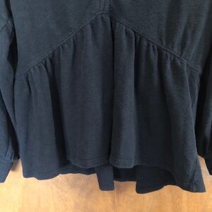 Adorable black Anthropologie Pilcro long sleeve babydoll top in a size small. It features a v-neck, a puff sleeve, a flowy relaxed baggy slouchy oversized boxy fit, a textured knit, & a 100% cotton fabric. As seen in the photos, there is pilling or wash wear.