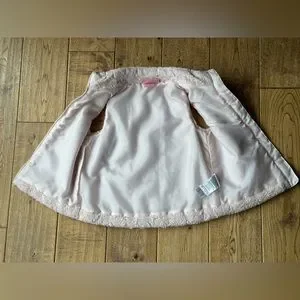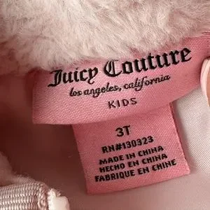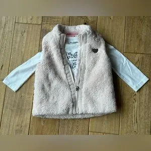 3-piece outfit from Juicy Couture. Toddler girl size 3T. Light pink faux fur full zip vest, white long sleeve shirt with pink/gray leopard print heart on center, and pink/gray leopard print matching leggings with juicy embroidered on the bottom of left leg. Good used condition.