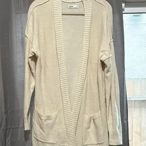 Stay cozy and stylish with this beige open-front cardigan sweater. Perfect for layering, it offers comfort and elegance for any occasion.