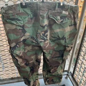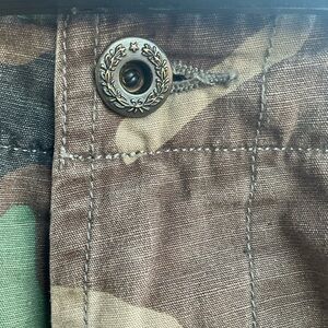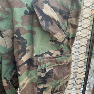 Polo Ralph Lauren cargo pants in a camo print. Classic fit with side leg pockets as well as front and back pockets. Zip fly. Has belt loops and side adjusters. Drawstring hem- can be left loose or tightened. “Utility Polo RL” label above back right pocket. Rugged and durable & ready to be shipped!
