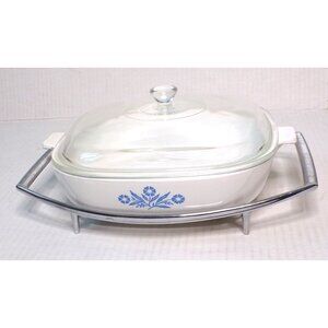 CORNING WARE Vintage Blue Cornflower Casserole Baking Dish with Cover and Stand