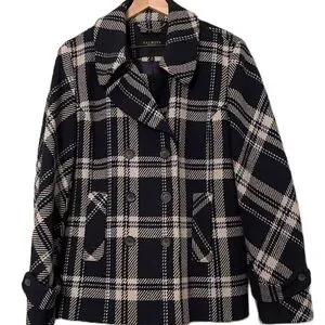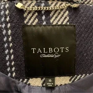 Elevate your style with the Talbots Women's Plaid Jacket. This chic black and white jacket offers a timeless plaid design, perfect for any occasion. Stay warm and fashionable with this must-have piece.