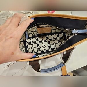Interior is a vinyl like material in Coach signature design.