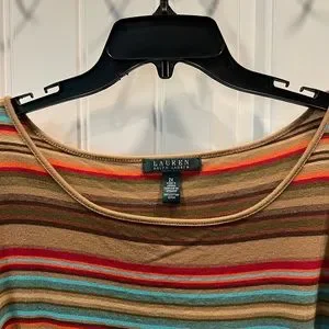 Ralph Lauren Brown Tan Orange Multi Striped Dress Sz 2X