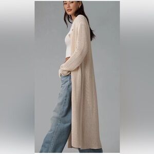 Anthropologie Pilcro Long Sleeve Open Stitch Duster Sweater Notch Collar Knit Nude