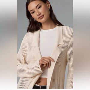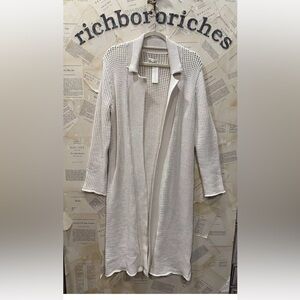 Anthropologie Pilcro Long Sleeve Open Stitch Duster Sweater Notch Collar Knit