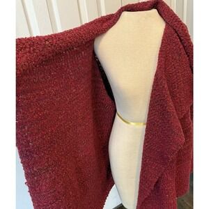 Habitat Cardigan Women's LG Chunky Knit Red/Pink Cowl Neck Open Front Lagenlook