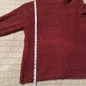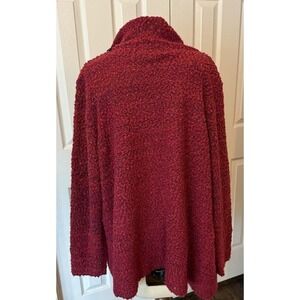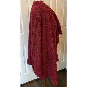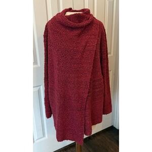 Slip into cozy sophistication with the Habitat Cardigan, a women's size large sweater that promises to be a versatile addition to your wardrobe. The chunky-knit design gives it a playful yet bohemian vibe, perfect for layering over your favorite tops and dresses. Its striking red hue, complemented by a comforting cowl neck, makes it an eye-catching statement piece for any occasion.