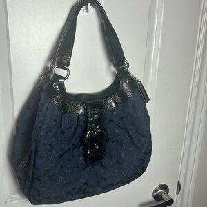 Vintage Y2K Coach Jaquard Blue Canvas and Patent leather Lynn Hobo