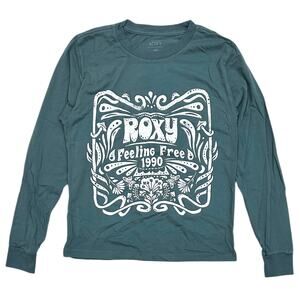 Roxy Women's T-Shirt Feeling Free Long Sleeve Crewneck Tee in Dark Teal