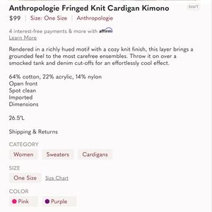 RARE Anthropologie Knit Fringe Kimono Shawl Cape Poncho Free People