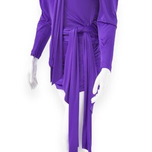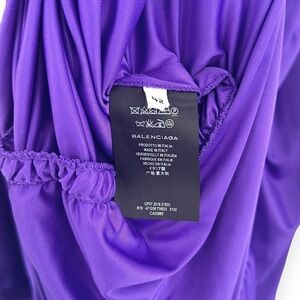 Balenciaga SS17 Purple Tie Neck Padded Shoulder Lightweight Mini Dress sz 42
