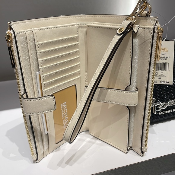 Michael Kors Jet Set Travel Large Double-Zip Wristlet-Wallet-PhoneHolder Pale Gold Multi