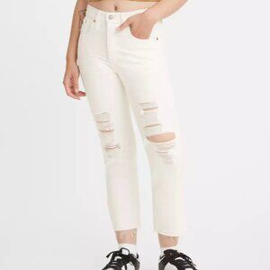 LEVI'S 501 Original Jeans Ecru Distressed Denim Sz 23x28