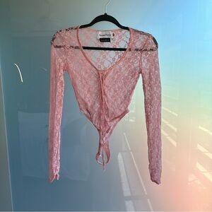 House of Sunny Lace Long Sleeve Pink