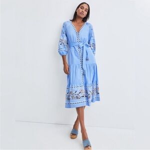 Veronica Beard Size 4 Freyja Blue Linen & Cotton Embroidered Button Detail Dress
