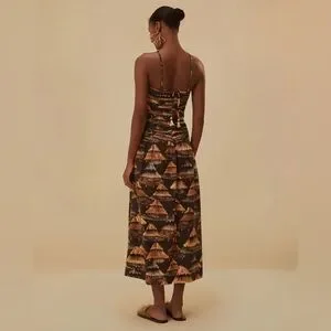 Farm Rio's collaboration with Brazil's indigenous Yawanawá women celebrates their stories, culture and craftsmanship – this dress is printed with 'Shuhu' huts, honoring the tribes' sacred communal spaces. It's cut from TENCEL™ and cotton-blend and has adjustable, tie-fastening straps and a gathered, cutout bodice.