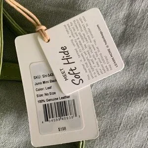 Brand new with tags. Green “leaf” color. Such a soft leather. Little pockets inside and a compartment in the back.