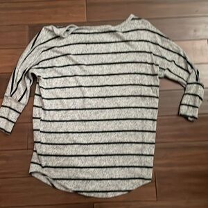 Gray and black striped dolman top. 3/4 sleeves. XS