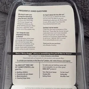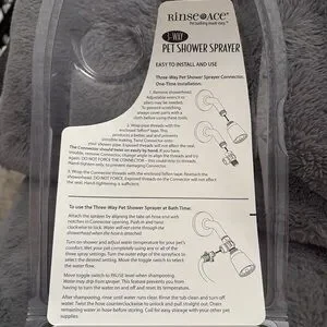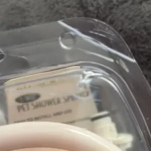Brand new pet shower sprayer purchased from pet supplies plus. Never used. Brand is Rinse Ace. I opened the box and waited for my husband to connect but it never happened. I can’t get the hose back in the packaging unless I cram it in there, so I won’t do that. Also see back corner of the packaging has a dent (last pic). Comes from a smoke free home.
