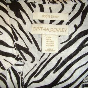 CYNTHIA ROWLEY 100% Linen Blouse in size 3X. Black and white zebra print.
