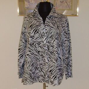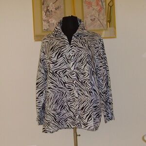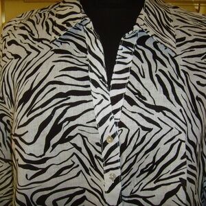 CYNTHIA ROWLEY 100% Linen Blouse 3X Zebra Print