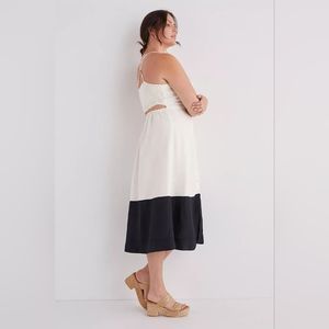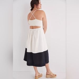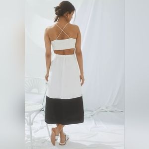 Featuring a colorblocked motif composed of striking contrast hues, this maxi dress is a laidback yet sophisticated staple for the season.