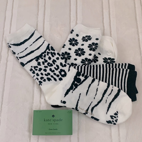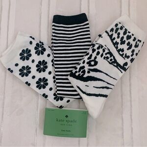 Kate Spade NY White Black Crew Socks 3 Pairs One Size