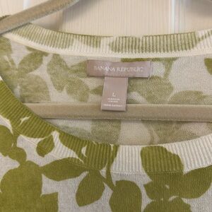 Banana Republic Green Floral Crewneck Sweater, Size Large