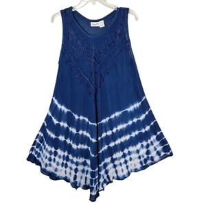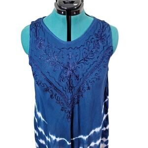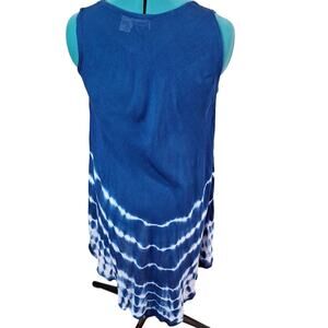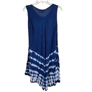 Vintage Sante Sleeveless Boho Navy Blue Tie Dye Dress Tunic Rayon Women One Size