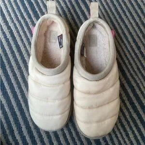 Men’s Tasman beige Uggs pink pulls. THESE SLIPPERS ARE TWO DIFFERENT men’s sizes